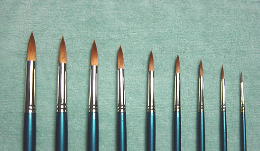 Round Pointer, Brown nylon, Nickle-plated brass ferrule, Long handle